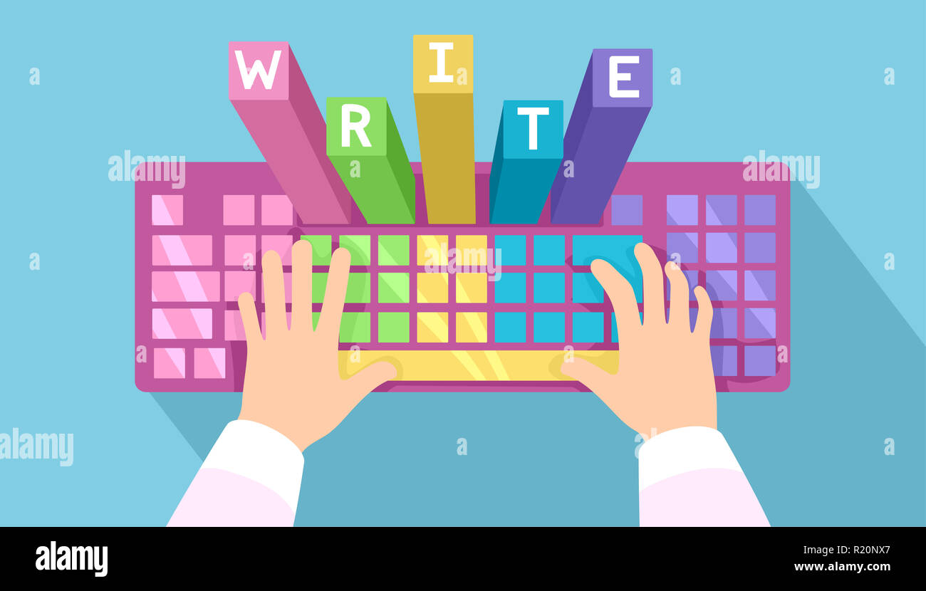 Illustration Featuring Hands Typing On A Colorful Keyboard With Letters That Spell Out Write Popping Above Stock Photo Alamy